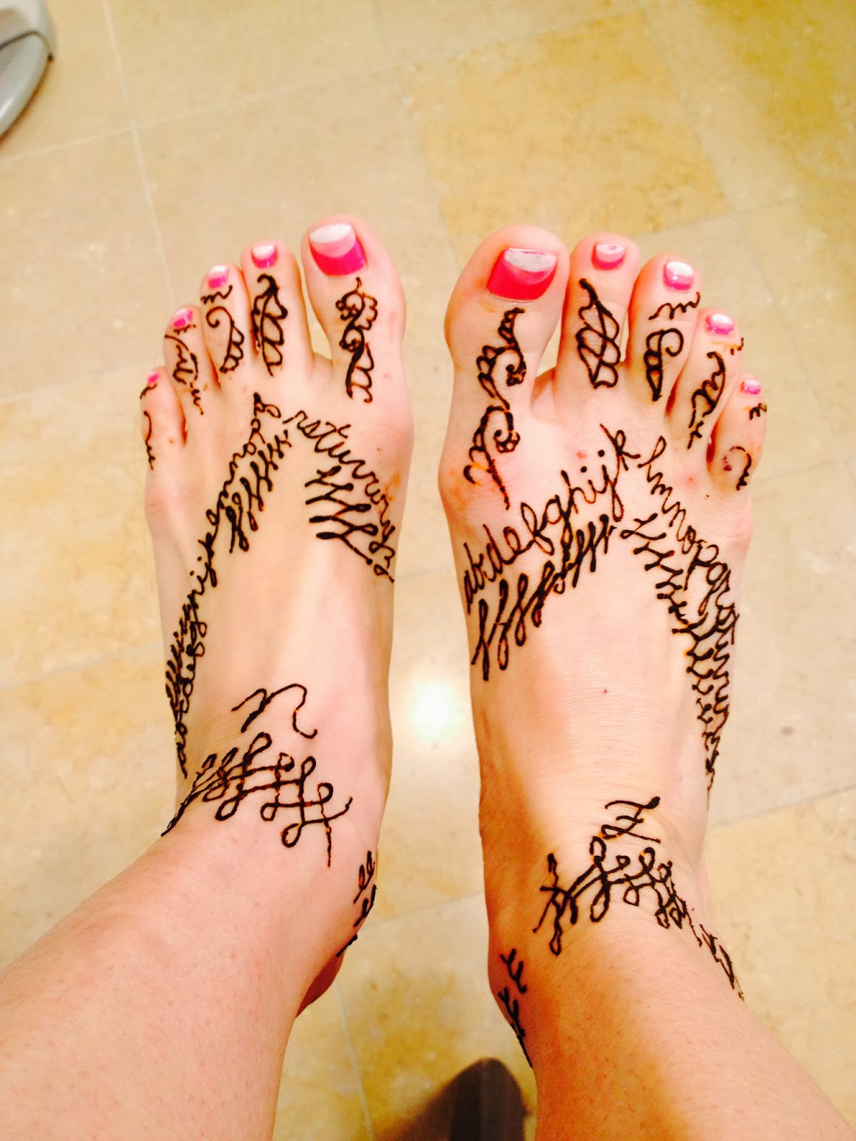 - note the ABC's on my foot. 3rd-5th are studying cursive following the henna unit since many henna elements are cursive marks and as an effort to keep cursive alive!